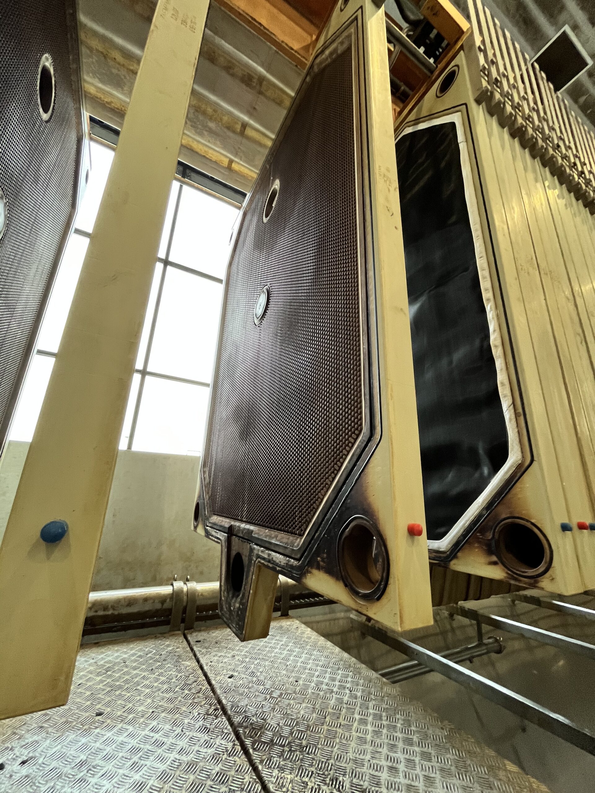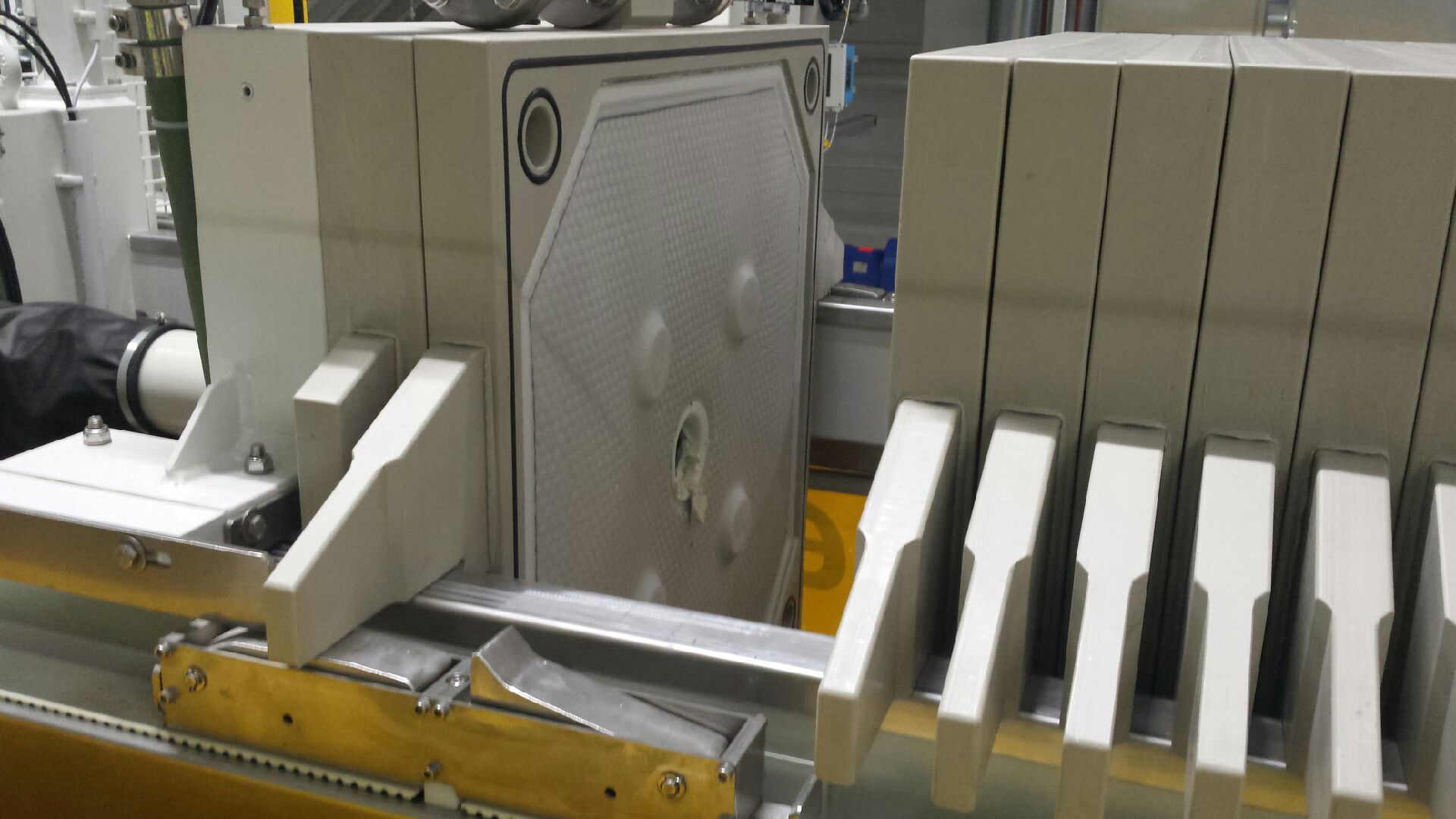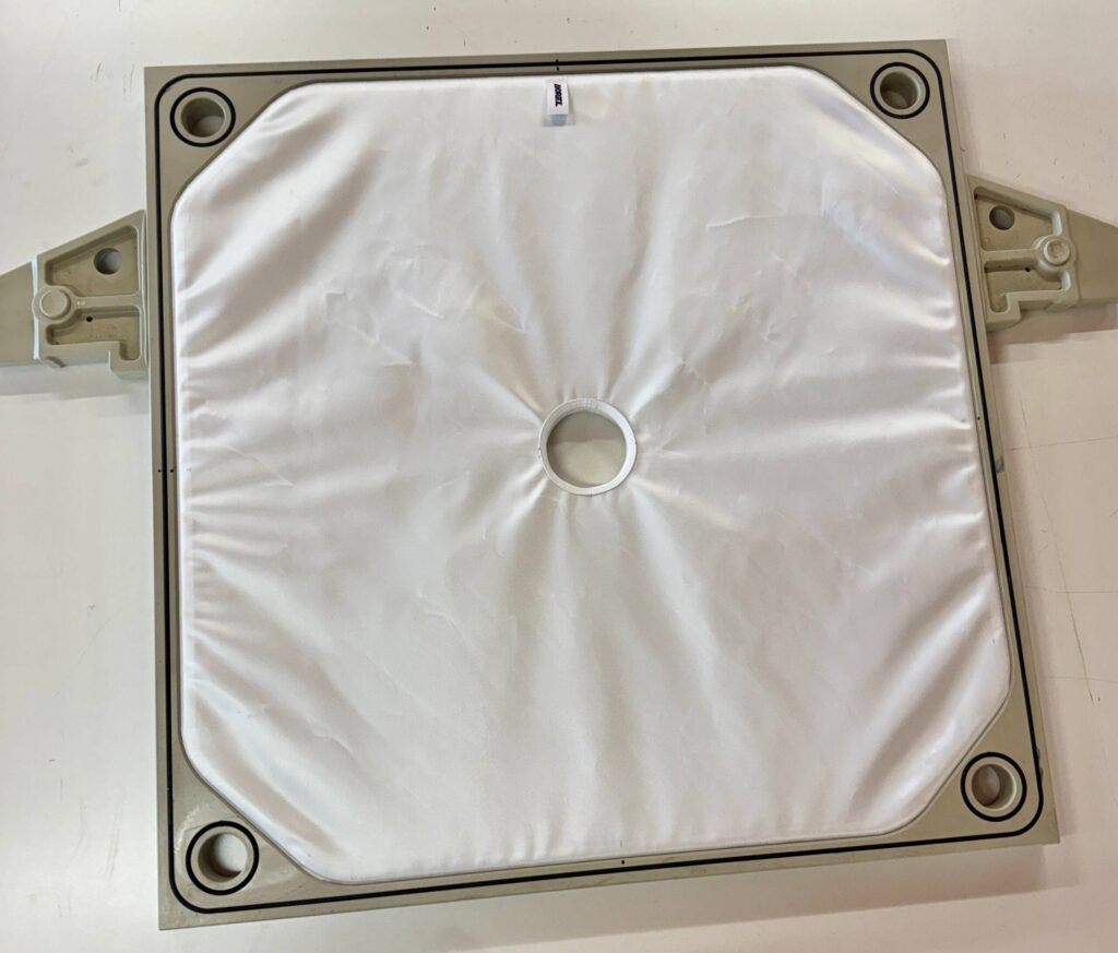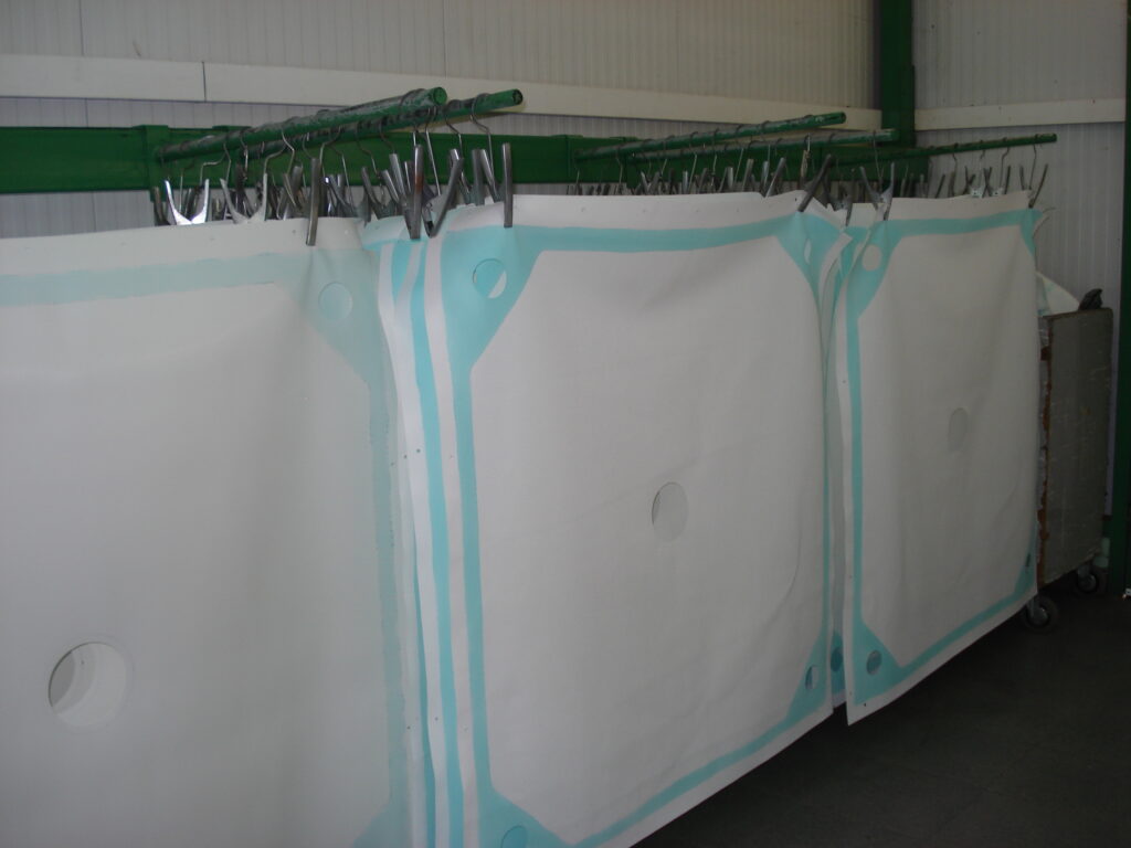 Płótna filtracyjne wykonujemy na wymiar z wcześniej przygotowanej dokumentacji technicznej z odpowiednim systemem otworowania (centralne, boczne, narożne, pod dopływ i odpływ). Obsługujemy wszystkie formaty płyt – od 470×470 mm do 2500×3000 mm.